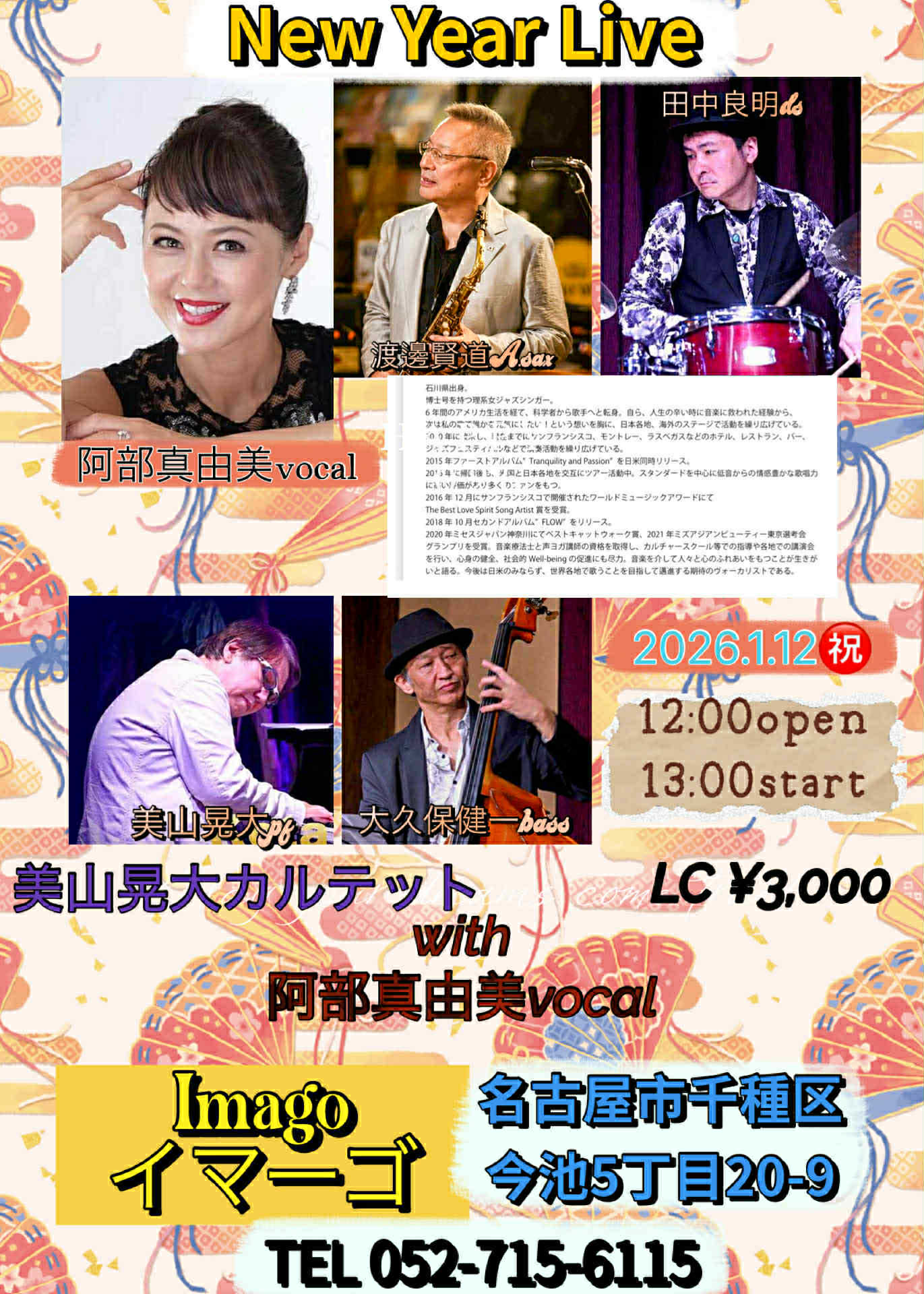 阿部真由美(vo), 渡邊賢道(sax), 美山晃大(pf), 大久保健一(b), 田中良明(drs)